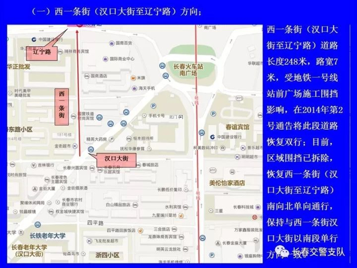 1、西一条街(汉口大街至辽宁路)方向;
