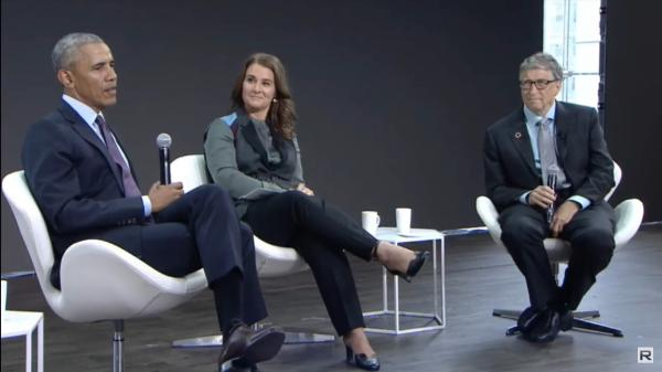 我在任总统期间,尽力向每一位我遇到的年轻领袖传递这个观点,这也是我在卸任总统之后,通过奥巴马基金会努力培训年轻人,鼓励他们去改变这个世界。我们的基地在芝加哥,不过我们的培训项目和社交网络会覆盖全球。我也希望在未来可以和在座的大家共事。和比尔以及梅琳达一样,我对大家充满了信心,我相信只要大家努力 ,这个世界就会更加美好。
