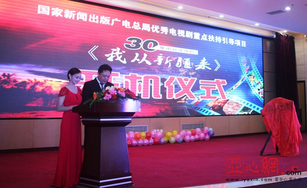 亚心网讯 金秋送爽,瓜果飘香。9月26日,由新疆维吾尔自治区党委宣传部、贵州省委宣传部、新疆新苗文化传媒有限公司、新苗视讯影视传媒有限公司出品,新疆退役军人创业俱乐部、新疆新苗文化传媒有限公司、新疆集结号文化传媒有限公司主办,以“感动中国2011年度十大人物”阿里木的事迹改编的30集电视连续剧《我从新疆来》(原名:我叫阿米提)开机仪式在新疆军区西虹宾馆举行,并邀请特约嘉宾主创团队为开机揭幕。来自自治区、新疆生产建设兵团、乌鲁木齐市相关部门领导、企业家、文化传媒及社会各界人士共300多人参加活动。