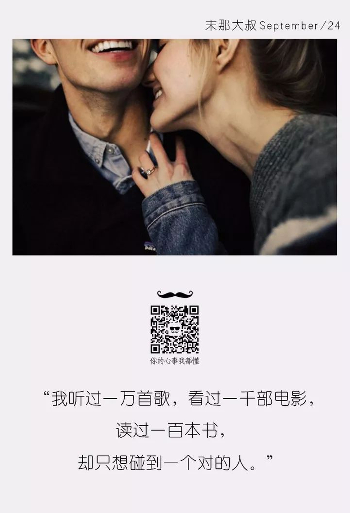 “我听过一万首歌,看过一千部电影,读过一百本书,却只想碰到一个对的人。”