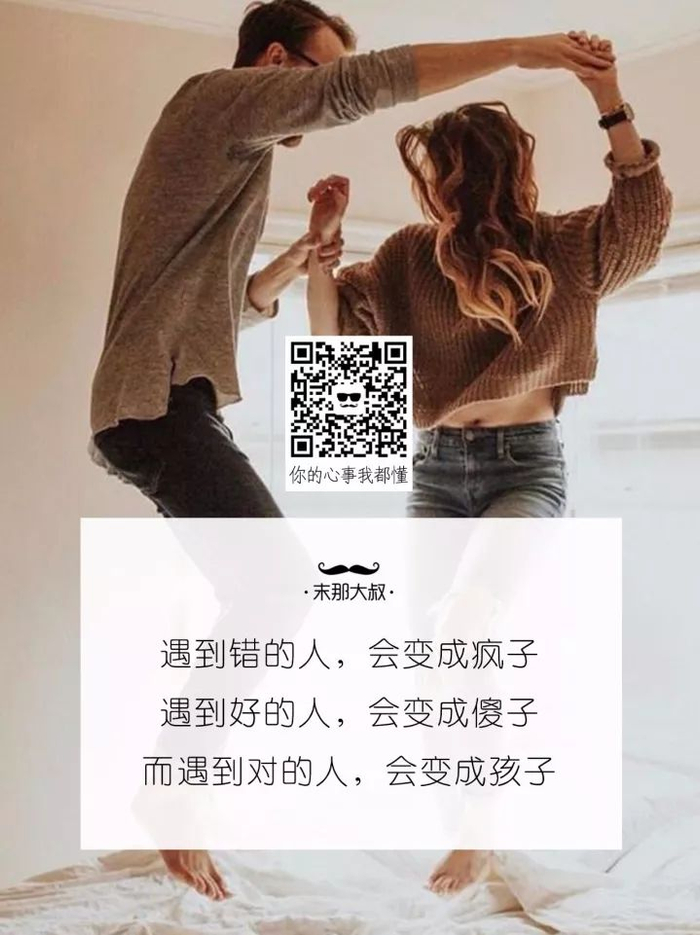 遇到错的人,会变成疯子。遇到好的人,会变成傻子。而遇到对的人,会变成孩子。