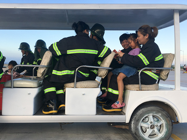 周美专说从没想过救火会遇到什么危险,只知道要及时赶到现场。 有时她正带着游客,突然接到任务,就得尽快把游客安置好,再赶往火灾现场。