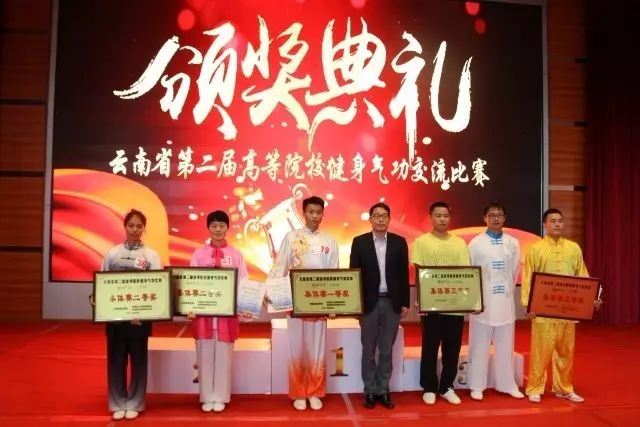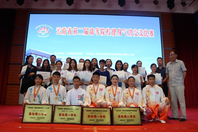 云南体育运动职业技术学院代表队、曲靖师范学院代表队、云南民族大学代表队获得易筋经集体赛一等奖;