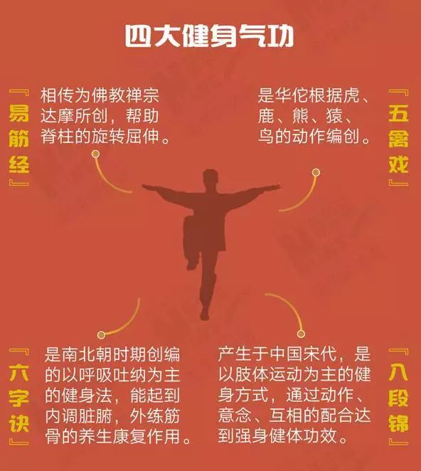 都是古人通过对自然界日月星辰的运动,天地风云的变化,鸟兽鱼虫飞行和奔竞姿态的不断观察,逐渐总结的出内容丰富、形式多样的健身功法。
