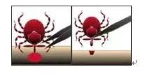 被蜱虫咬伤后,用尖头镊子将其拔出的示意图。