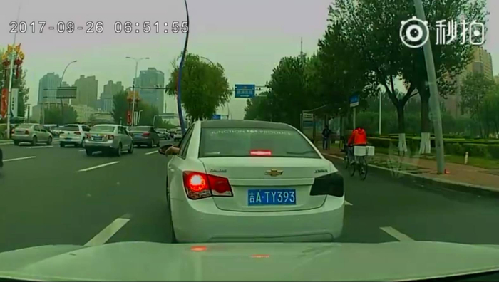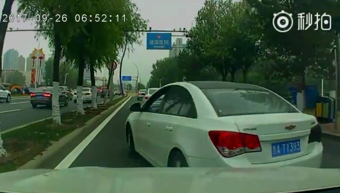 9月26日上午10点27分,网友“大忙人3309941191”在网上发布了一则帖子,并配发了一段长达3分钟的视频,视频内容是一段行车记录仪拍摄下来的片段,视频中一辆牌照为吉ATY393白色雪佛兰轿车在2分钟内3次别停了后车,并且始终呈S状前行,逼得后车只好右转绕行。