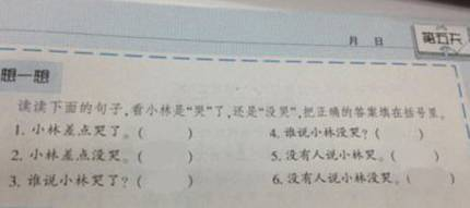 题目:读读下面的句子,看小林是“哭了”,还是“没哭”。