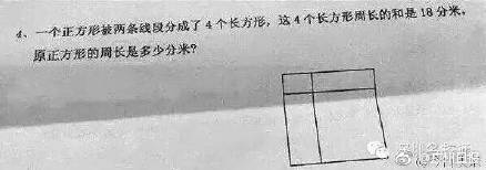 题目:一个正方形被两条线段分成了4个长方形,这4个长方形周长的和是18分米,请问原正方形的周长是多少分米?