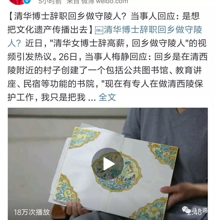 注重教育,注重文化传播,任重道远。让寻乡君想起近日,一个名为《清华女博士辞掉高薪,回乡做守陵人》的视频在网上热传,称清华大学建筑专业博士梅静回河北老家守西陵。