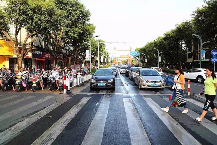 行人遵守交通规则,有序过街