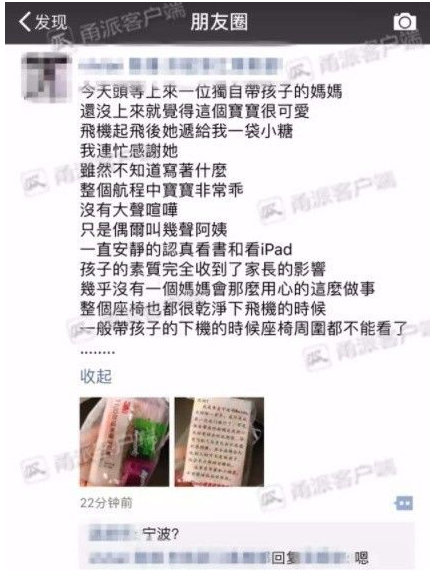宁波正畸糖果牙医杨艳:哇哦,我朋友刚好乘坐同一航班同样舱位,在拿到这位妈妈的温馨糖果后还发到朋友圈大加赞赏。