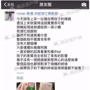 这个消息在当时也引起了潮水般的评论,很多网友分享了他们跟小孩一起飞行的经历。更有网友说,她的父母曾经因为她在飞机上太过吵闹而请周围的旅客喝饮料以作补偿。人们大赞这对父母有爱、有素质!