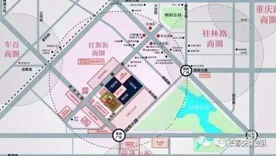 欧亚商圈红旗街、工农大路沿线;桂林路商圈同志街、桂林路一带;重庆路商圈重庆路、西安大路、光明路周边,欧亚卖场周边,南湖广场。
