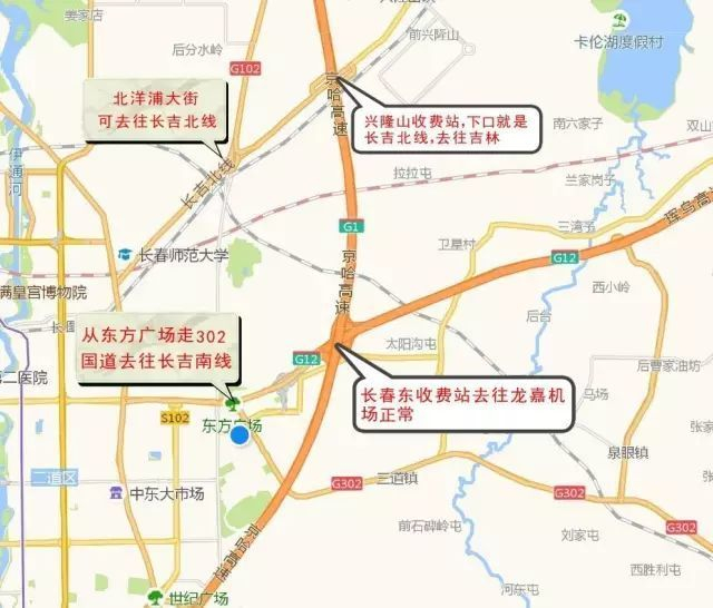出城车辆(农安方向):长白公路—今麦街(长白公路4公里右转)—长客路(左转)—远恒街(左转)—长白公路(右转)绕行。