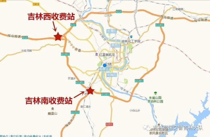 特别重要:由于吉林西收费站入口是距离长吉南线、长吉北线最近的高速公路入口,外地图经吉林车辆均会在吉林西入口上高速,因此会出现车流缓慢、车辆短时间拥堵情况,建议吉林市内车辆绕行其他收费站口上高速!
