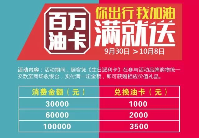 活动期间,顾客凭《生日派利卡》在参与活动品牌购物统一交款至商场收银台,实付满一定金额,即可获赠相应价值礼品。