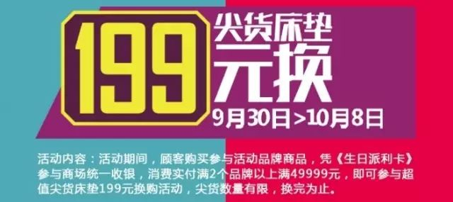 活动期间,顾客凭《生日派利卡》购买参与活动品牌商品,参与商场统一收银,消费满2个以上品牌,实付金额满49999元,即可参与超值尖货换购,尖货商品数量有限,换完为止。