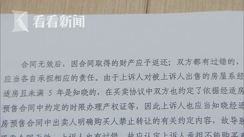 最近,市民王女士向看看新闻Knew和《新闻坊》微信公众号反映,说2015年的时候,她通过房产中介公司“爱屋吉屋”居间,购买了一套未满5年的经济适用房。因为属于违规行为,法院判决合同无效。可是,上家以及中介无视法院的判决,一直没有退还首付款以及居间报酬。究竟是怎么回事呢?Knews记者吴浩亮展开了调查。