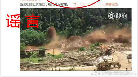 【传闻】有网民在微博上发布一段名为“西双版纳山洪爆发,瞬间淹没村庄”的小视频。