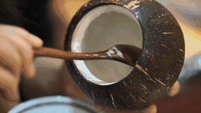 虽然椰汁喝起来只是淡淡的甜味,但含糖量并不低,你别被骗了。另外,椰肉的含油量高达35%,同时有大量的脂肪和蛋白质。按100克来算,椰子有241千卡的热量,相当于2.1碗米饭。