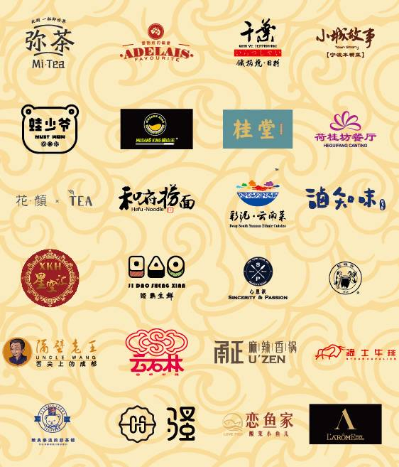 小吃品牌串骚、滷知味;榴莲甜品翘楚猫山王;宁波本帮菜小城故事、缸鸭狗、桂堂;海派融合菜荷桂坊餐厅;