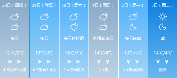 29日夜间到30日白天:全省晴有时多云。