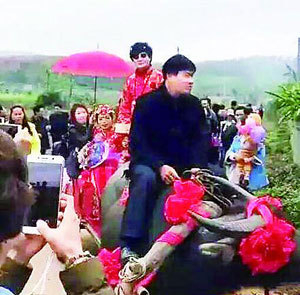 结婚接亲也疯狂:有人带"九牛二虎" 有父母扮毛驴