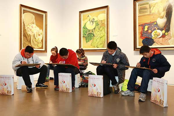 学生在展厅创作