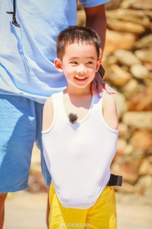 当陈小春在海边捡海鲜时划破了脚,Jasper反反复复的追着爸爸,奶声奶气地说,我要看,你受伤了...
