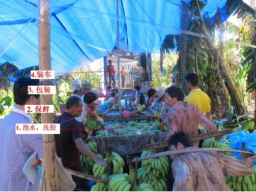 中国热带农业科学院农产品加工研究所、分析测试中心的王明月研究员表示,香蕉产于热带亚热带地区,是一种“呼吸跃变型”水果。它在采摘后呼吸旺盛,到了一定成熟度时会出现“呼吸爆发”,抵抗力下降,很容易被碰伤或被真菌侵染,变黑腐烂。在这种情况下,需要长距离运输的香蕉很容易整车“全军覆没”,所以香蕉采后的保鲜是一个关键环节。一般情况下,割蕉后,产地周边鲜销的就直接入库贮存,长距离运输的则需要马上做保鲜处理,视频中的乳白色液体就是保鲜剂。