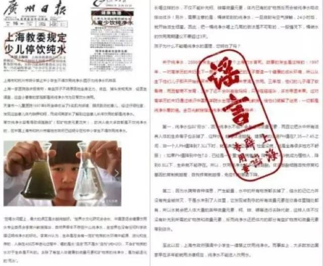 记者通过梳理线索发现了造谣者的“狐狸尾巴”。记者溯源发现,《广州日报》的确有过这样的报道,但刊发时间是1997年8月16日。当时,纯净水市场混乱无章,各种“问题纯净水”流入市场,加之消费者对饮水机的使用不熟悉,可能会导致饮用水二次污染等卫生问题。因此,上海相关部门为防止学生喝到不达标纯净水,规定在中小学生中不宜推广纯净水。