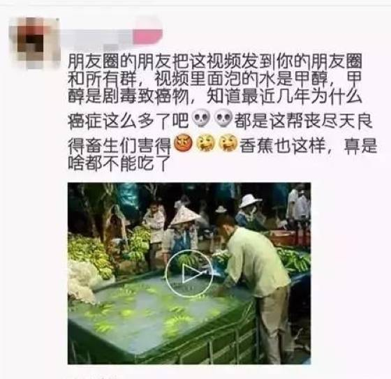 近日,一则“香蕉浸泡不明液体”的视频在微博、微信群和朋友圈上流传甚广,消费者纷纷担心不明液体是有毒的,有网友表示不明液体就是甲醛。