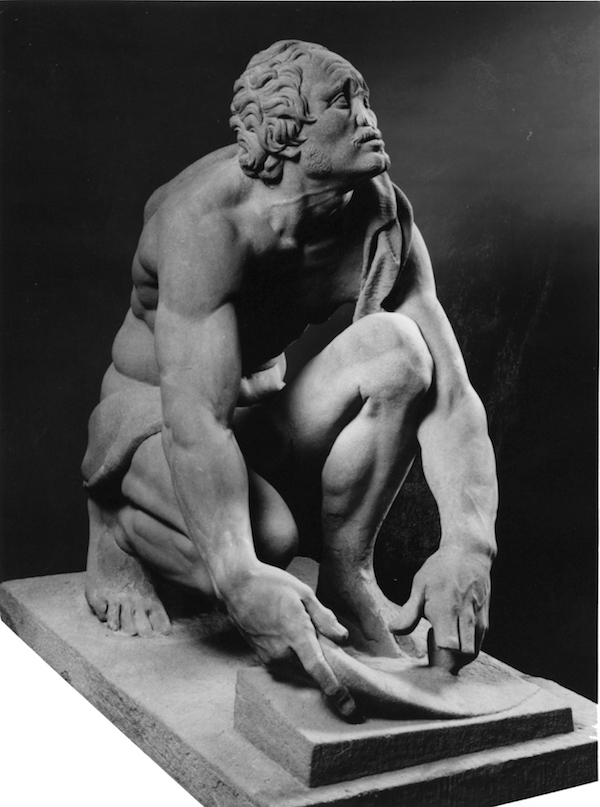 现场还有一件米开朗基罗的《朗弗兰奇的磨刀工人》,澎湃新闻(www.thepaper.cn)记者走了一圈没有发现这件作品的展签或任何介绍文字。不过,根据相关资料介绍,这件作品是在2002年被意大利艾纳“科尔”大学古典考古学副教授芙拉维亚·奇萨确认是真迹并且对外公布的。