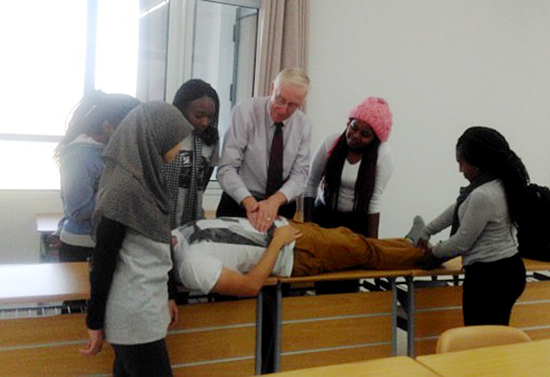 在讲授海姆立克急救法(Heimlich Maneuver)时,“老麦”会假装被鱼刺卡住,向学生发问如何进行处置。学生上台后将双手放在他腹部,用力挤按,演示、操作急救方法;在讲解局部麻醉药时,为了能让学生更好地理解药物的使用方法和效果,他竟直接让一名学生使用一次性注射器在他的手臂上注射局部麻醉药,然后让学生观察自己被麻醉部位的反应,使学生直观深刻地理解了此种麻醉药的性质。
