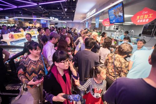 图为盒马鲜生杭州运河店开业现场。