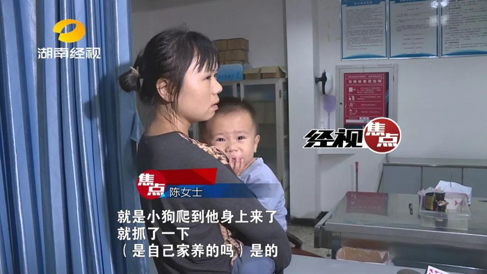 两岁半的小可乐今天是接种第四针狂犬疫苗,母亲陈女士说,孩子是被自家狗狗抓伤的。
