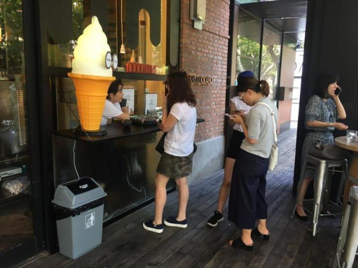 在原本的网红面包店旁,现在又开了一家快闪冰激凌店,不同于之前网红冰激凌的火爆,这家店的冰激凌可以随到随买。昔日热闹的武康路,似乎还没准备好再迎接一家新的“网红”。