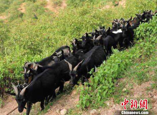 资料图。陇东黑山羊是中国历史悠久的地方山羊品种,该品种主要分布在陇东黄土高原区的庆阳环县等地。以其肉质细嫩,低脂肪高蛋白、膻腥味极轻,被誉为“黄土高原黑精灵”。李文 摄