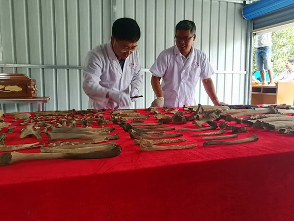 打捞上来的人体遗骸可确定遗骸20余具,均为男性,年龄在15-25岁之间 李法军供图