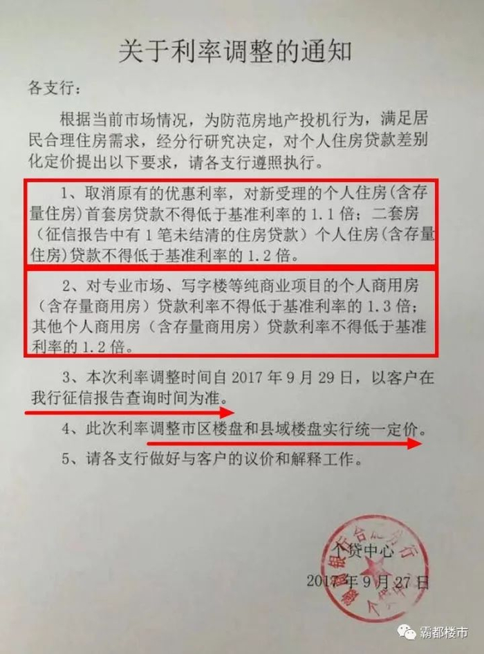 4、此次利率调整市区楼盘和县域楼盘实行统一定价。