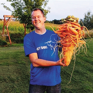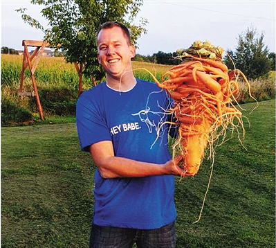 美国明尼苏达州34岁男子克里斯近年来一直在自家菜园种植巨型蔬菜,这次,他种出了世界上最大的胡萝卜。这个胡萝卜根须纷繁,状如树精,并且重达22.4磅(约20.3斤),打破了之前来自英国诺丁汉郡的世界最大胡萝卜重20磅(约18斤)的吉尼斯世界纪录。除了胡萝卜外,克里斯还种出了巨型西瓜、南瓜和甘南等。