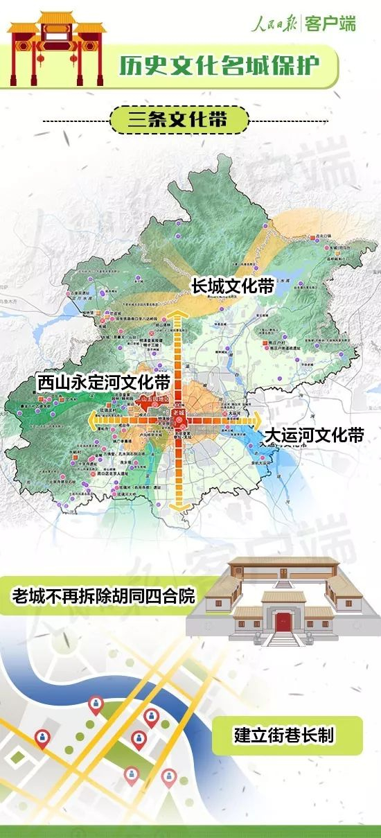 北京将更加重视老城整体保护与复兴,通过保护传统中轴线、保护明清皇城、要保护原有的街巷胡同格局、恢复历史河湖水系、严格建筑高度管控、保护重要景观视廊和街道对景、保护老城传统建筑色彩和形态特征等,使老城的整体格局、传统风貌更加清晰。