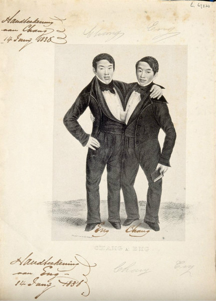 1811年,有中国血统的昌和恩兄弟生于暹罗(现泰国),他们胸部相连,其余部分都完整独立。1829年,一位苏格兰商人看见他们在河里游泳,意识到这是一个巨大商机,花钱说服其父母,带他们到全世界路演,获得相当大的成功。演出合同到期后,兄弟俩继续自己干,巡演到了北卡罗莱那州时,他们非常喜欢那里,就买了110公顷土地,又买了黑奴帮着照料种植园,过上了和正常人一样的生活。他们还和当地一对姐妹结了婚,并成了美国公民。