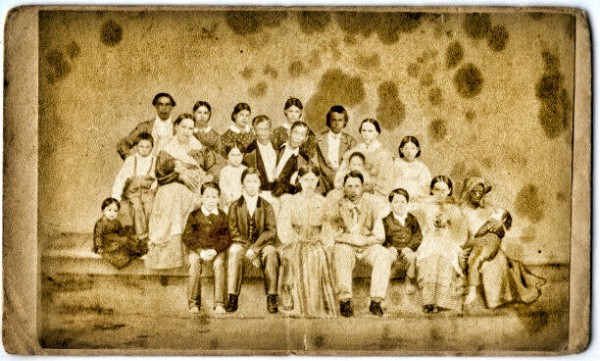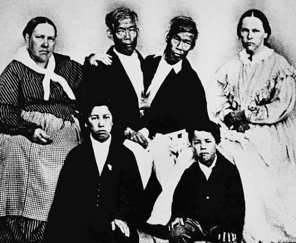 昌与恩的全家福:他们的妻子及18个子女及一个奴隶