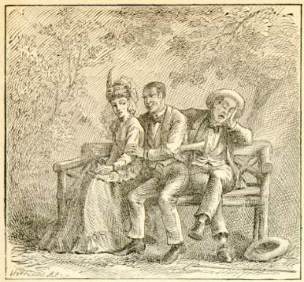 马克吐温短篇故事的插图,表现了一对恋人和永远在一起的电灯泡(这只是比喻,爱迪生那时尚未发明商用白炽灯泡)