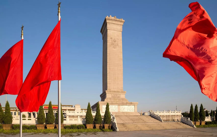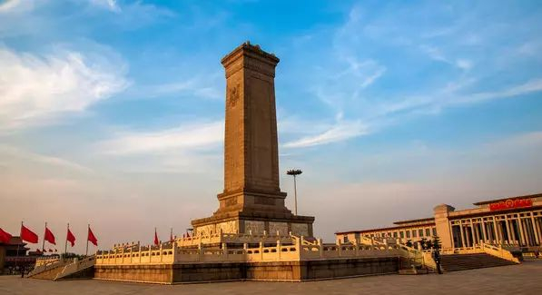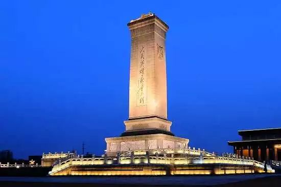 这座纪念碑是根据1949年9月30日中国人民政治协商会议第一届全体会议的决议兴建的。当天傍晚,毛主席率领全体政协委员为纪念碑举行了庄严隆重的奠基礼,毛主席亲自执锨铲土,为纪念碑奠定基石。从1952年8月1日动工兴建以来,得到了全国人民的热情支援和关怀。这是中国自古以来最大的一座纪念碑,从地面到碑顶高达37.94米,有10层楼那么高,比纪念碑对面的天安门还高4.24米。纪念碑是用17000块坚硬的花岗石和洁白的汉白玉砌成的。它象征着先烈们的丰功伟绩,标志着全国人民对先烈的怀念。