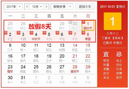 8天,号称2017年最长假期,旅游、探亲、结婚、休息……任你挥霍啦!
