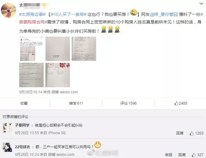 不少网友惊讶,“居然还有这种操作?”“赶紧纠集小伙伴买房啦!” 也有网友担忧,10个人一起买房后期有了矛盾怎么办?当然,也有人质疑,这10人是在炒房,或是炒作。