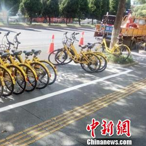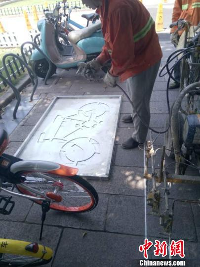 杭州城管部门为共享单车施划新增泊位 杭州市城管委供图