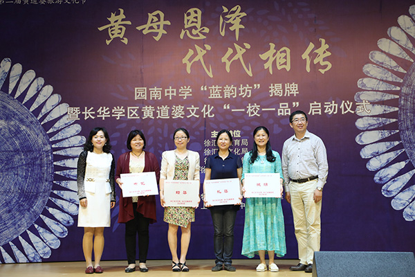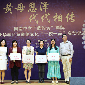 9月29日下午,徐汇区长华学区在园南中学举办黄母恩泽,“代代相传——园南中学‘蓝韵坊’”揭牌暨长华学区“一校一品”启动仪式。至此,徐汇区在全区范围内实现“非遗进校园”全覆盖。